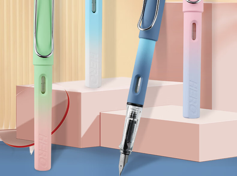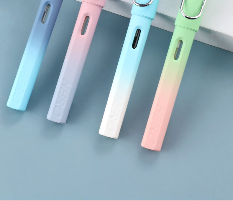 英雄(HERO)钢笔 359B 明尖铱金男女学生初学练字三年级正姿签字钢笔(附加6支墨囊) EF尖 渐变粉