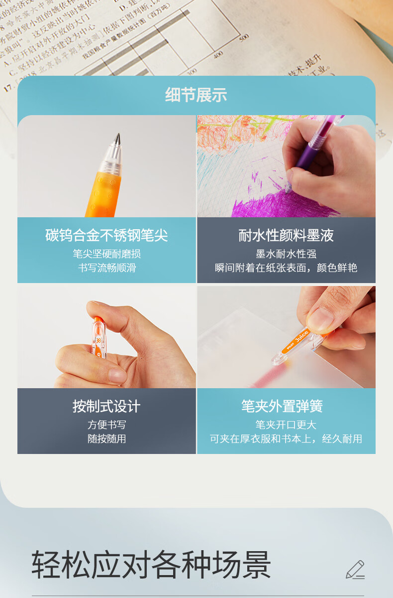 得力(deli)直液笔速干笔签字笔 尖锥头全针管子弹头中性笔 商务办公学生水笔走珠笔 书写不脏手 2支装-V96【备考中性笔】