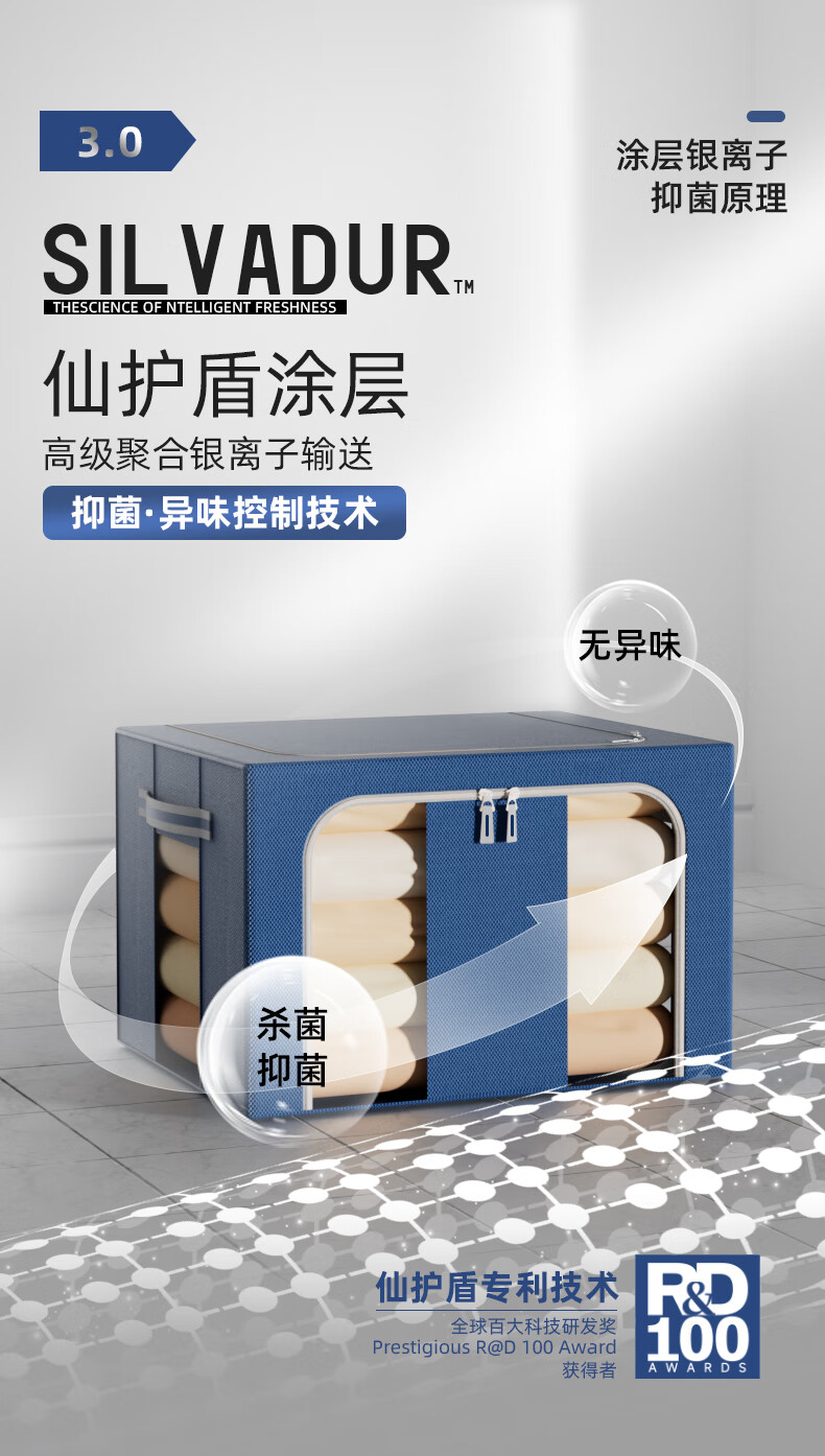 商品名称:晟旎尚品 收纳箱抗菌66L大号3只装衣服棉被布艺整理箱牛津布折叠储物箱