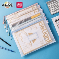 得力(deli)5只A4防水网格学科拉链袋 彩色资料袋文件袋 试卷财务凭证收纳可放置标签 莫兰迪色系混色63484