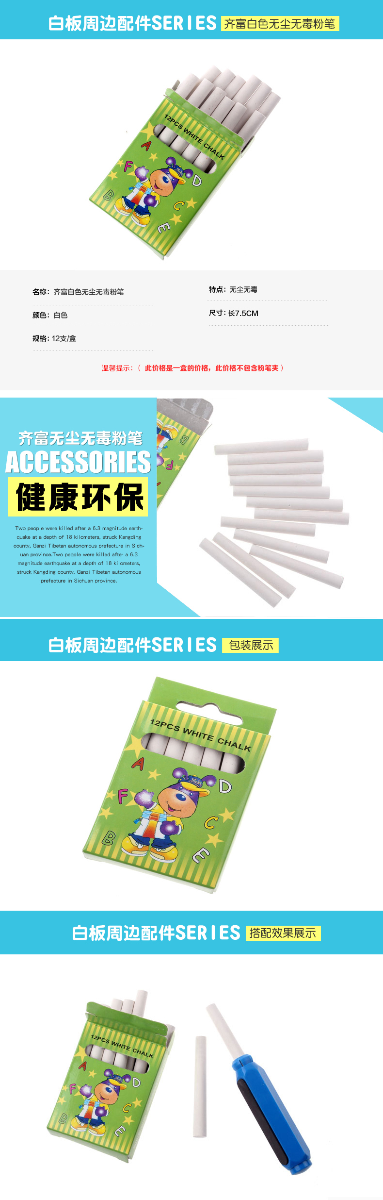 商品名称:齐富(QIFU) 齐富粉笔儿童绘画安全粉笔夹12支装环保教学 白色粉笔