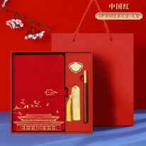 嘉然恒 国潮笔记本本子礼盒套装高颜值故宫中国风记事本商务伴手礼高档礼品毕业送老师同学礼物可定制 中国红