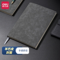 得力(deli)16K/120张羊巴皮笔记本子 加厚软面皮面本记事本日记本办公用品 灰色3345