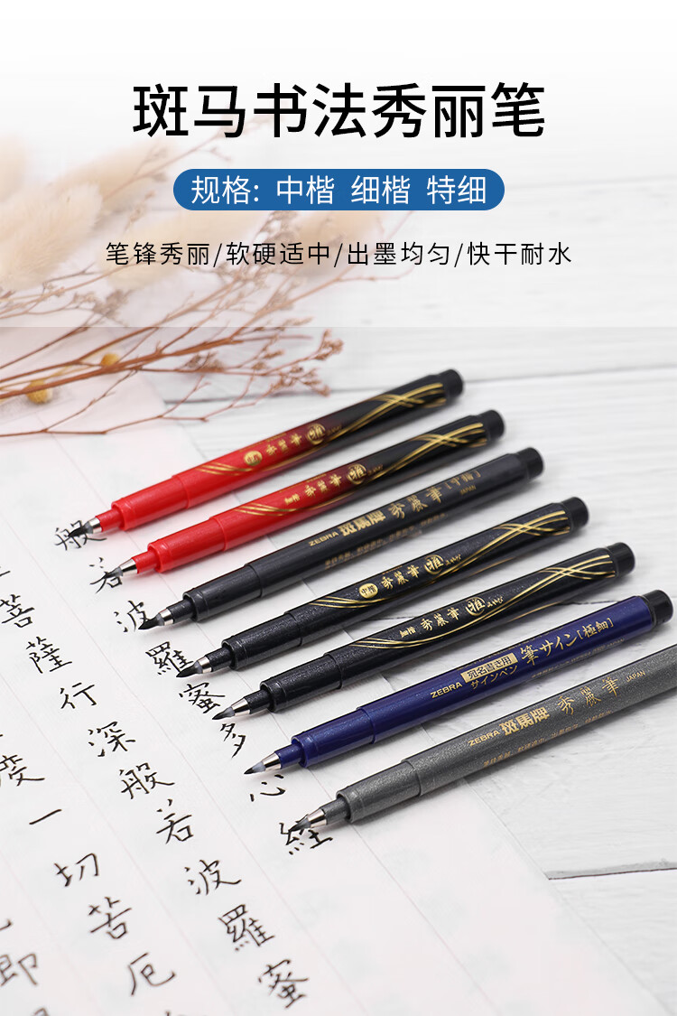 斑马牌(ZEBRA)小楷 学生毛笔练字笔 书法笔请柬笔 WF1 银灰笔杆 单支装